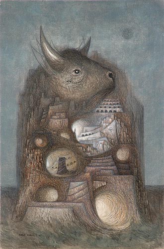 Mario Rangel Bull, 17 5/8 x 11 5/8 inches 1967, Graphite and Pigment on Muslin mounted on Masonite Panel Contact Gallery for Price